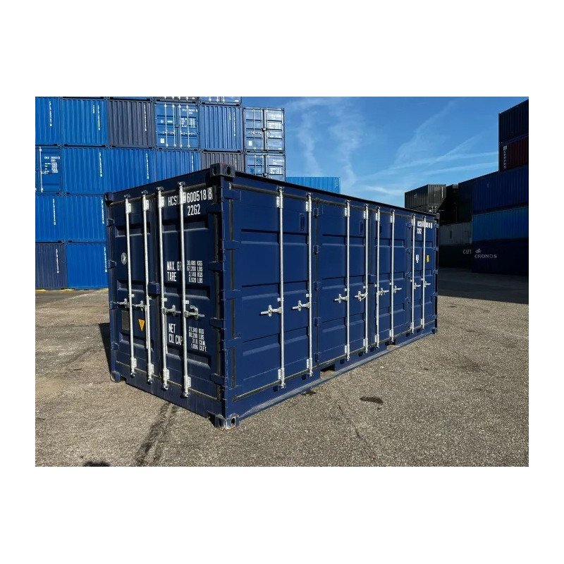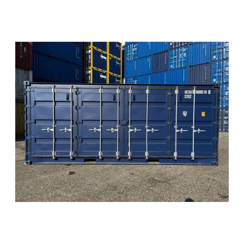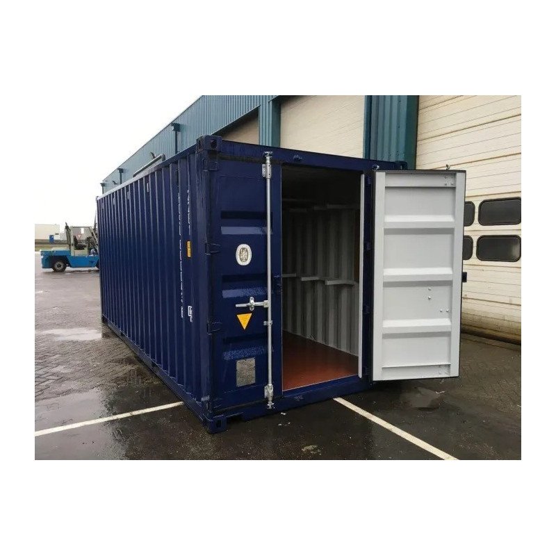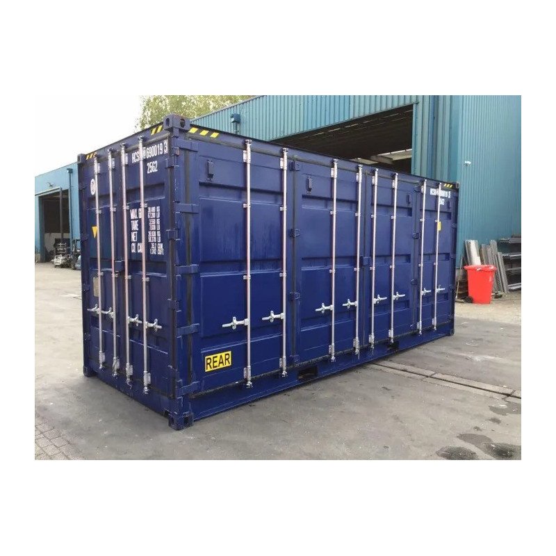 Der 20ft Open Side Container verfügt über eine komplette Türöffnung entlang einer Längsseite sowie Standardtüren an der Stirnseite. Ideal für seitliches Be- und Entladen großer oder sperriger Güter. Aus robustem CORTEN-Stahl, CSC-zertifiziert, mit Sperrholzboden und Lockbox. Stapelbar und für Gabelstapler geeignet.